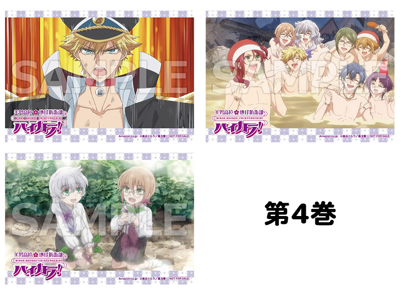 店舗別オリジナル特典 各巻購入特典 Amazon.co.jp 第1巻購入特典 L判ブロマイド3枚セット【場面カット】 予約/購入はこちら 第2巻購入特典 L判ブロマイド3枚セット【場面カット】 予約/購入はこちら 第3巻購入特典 L判ブロマイド3枚セット【場面カット】 予約/購入はこちら 第4巻購入特典 L判ブロマイド3枚セット【場面カット】 予約/購入はこちら 全巻購入特典 全国アニメイト(通販含む) 購入特典 キービジュアルアクリルスタンド(200×100mm)【ハイカラ浪漫団】+缶バッジ (56mm) 5個セット【ハイカラ浪漫団 5種】 予約/購入はこちら 楽天ブックス 購入特典 キービジュアルアクリルプレート(B6)2種セット 【ハイカラ浪漫団 / 蛮華羅新鋭隊】 予約/購入はこちら きゃにめ 購入特典 ハイカラ浪漫団の「東京ドームシティって ハイカラだぜ!」番外編! ハイカラ浪漫団の5人(高野大河 長岡龍歩 観世智顕 小池貴大 草野太一)がハイカラを求めてお出かけする特典映像の番外編(Blu-ray)をきゃにめで全巻購入いただいた方にプレゼント!